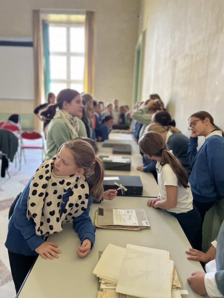Elles continuent la visite et se dirigent vers les archives historiques de la défense nationale qui se trouvent juste de l’autre côté de la grille qui les sépare du donjon. « Dans ces archives, explique Thaïs, il y a beaucoup d’informations sur les militaires, leur date de naissance, leur caractère. On a aussi vu un carnet que les enfants avaient fait pendant la dernière guerre pour décrire leur quotidien au Maréchal Pétain ». Au cours du voyage au pays des archives, « on apprend à faire la différence entre les vraies et les fausses archives, celles qui peuvent avoir été vieillies exprès, dont la pliure n’est pas usée », explique Margot. « Et tout est conservé dans des boites spéciales qui résistent au feu et aux inondations. Lors d’une inondation, des documents ont été perdus parce qu’on a mis trop de temps à venir les chercher ». Thaïs se fascine pour le classement des documents : « Certains sont secrets, top secret ou confidentiel » et « il y en a qui sont réservés aux militaires, aux ministères. Les dames qui font la visite, elles-mêmes n’ont pas accès aux documents top secret ! », renchérit Margot.