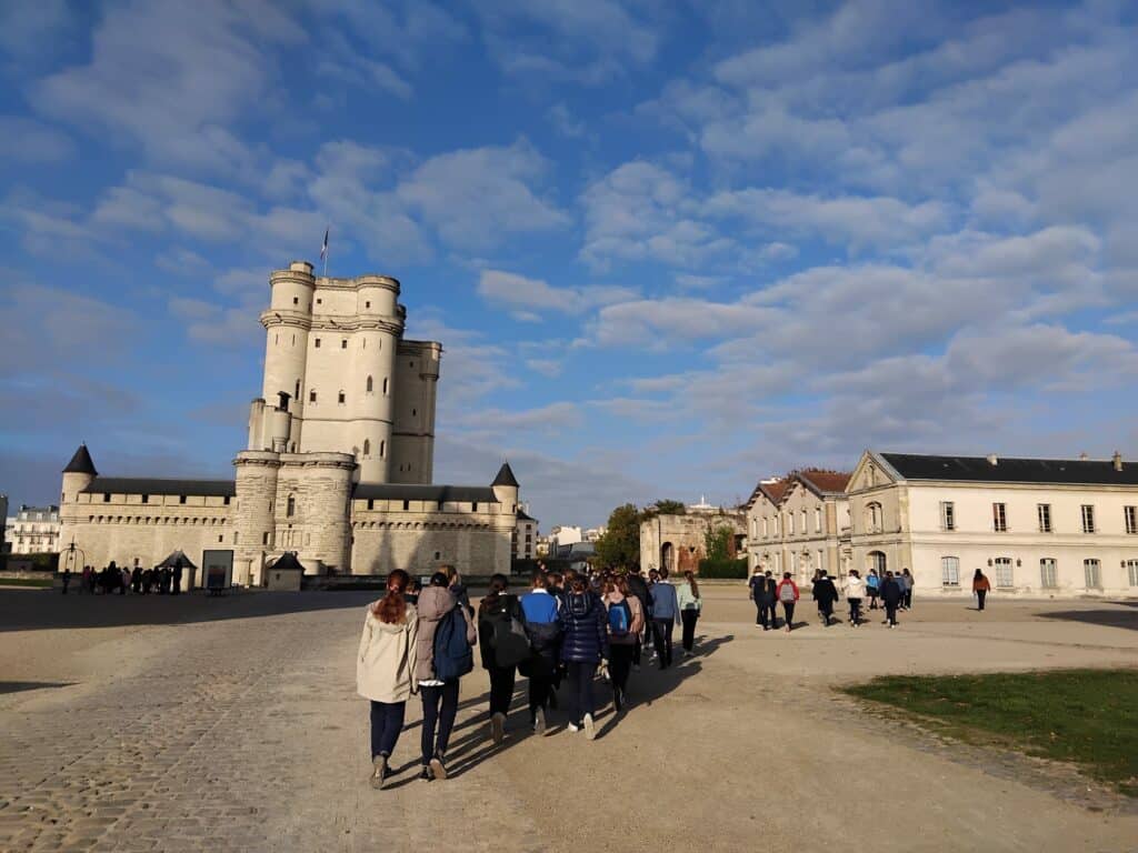 Dans le parc floral, les paons se déplacent en liberté. « Des fleurs, de grandes pelouses, de petits lacs, c’est magnifique », s’extasie Thaïs. Face au château de Vincennes, les élèves vont pique-niquer et jouer : balles aux prisonniers, gamelles… « On ne se connaît pas toutes très très bien. Cette journée, c’était un bon moyen de souder la classe », explique Thaïs.
