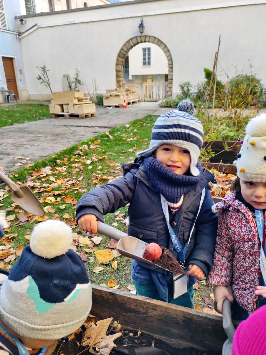 Mardi 18 novembre, accompagnés par 6 mamans, Fabienne, l’aide maternelle, et Mme Perny, la maîtresse, bravant le froid sous un soleil radieux, les petites sections de maternelle de Vignes sont parties à la découverte du jardin potager de la paroisse de Notre-Dame de Grâce de Passy.