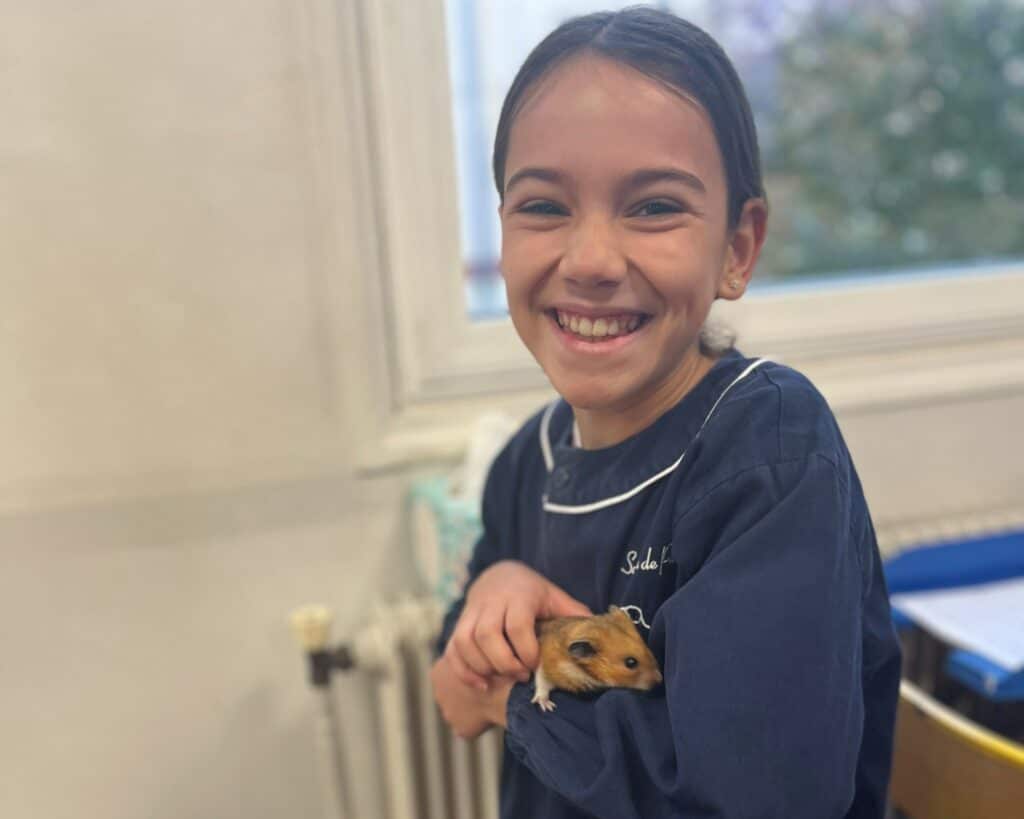 Quand nous l’avons aperçu, nous nous sommes précipités pour le voir : il avait une magnifique tête et semblait tout doux. Mais, le lendemain matin, l’animal n’était plus dans sa cage ! Nous l’avons cherché toute la matinée, absolument partout dans la classe et dans le couloir. Mais rien à l’horizon …