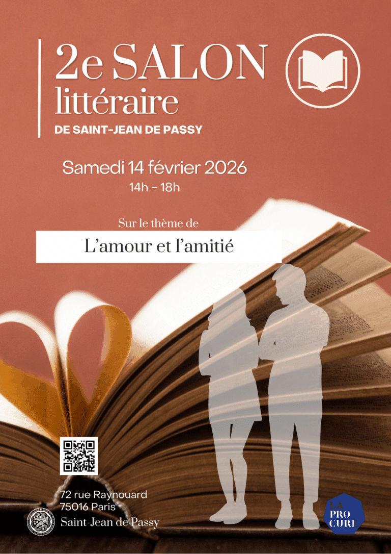 En partenariat avec la Procure, le 2d salon littéraire de Saint-Jean de Passy se tiendra le 14 février 2026 au 72 rue Raynouard (Paris 16e). Il aura pour thème : l’amour et l’amitié.